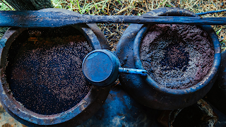 Dabu is a smooth paste, which is combined well soaked and sieved black earth, tree gum, and wheatgrass powder. Before making stamps onto the fabric, the printer gently pats the wood block onto the dabu. During the Indigo dying process, this paste acts as a resist.